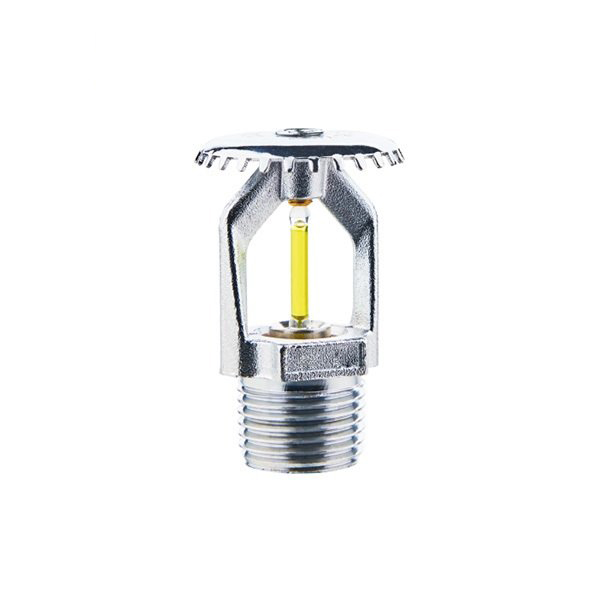快速响应玻璃球洒水喷头较特殊响应洒水喷头动作更快速;是自动喷水灭火系统中关键的组成部件之一,用来探测火灾并通过自动喷水来控制或扑灭火灾。当防护区内发生火灾,环境温度达到玻璃球洒水喷头额定动作温度时,玻璃球破裂,密封组件脱落,喷头自动开启喷水灭火。可用于供水压力不高、但要求洒水面积更大的保护区内,广泛用于保护仓库学校、礼堂、俱乐部、厂房、旅馆、饭店、医院、办公楼等轻、中危险及严重危险级的建筑物。喷头的公称动作温度应大于环境最高温度30°C; 执行标准: GB5135.1。