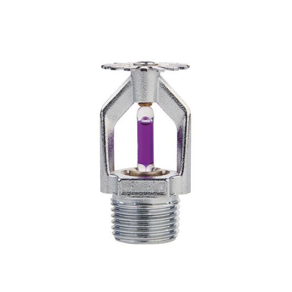 特殊响应玻璃球洒水喷头是自动喷水灭火系统中关键的组成部件之一,用来探测火灾并通过自动喷水来控制或扑灭火灾。当防护区内发生火灾,环境温度达到玻璃球洒水喷头额定动作温度时,玻璃球破裂,密封组件脱落,喷头自动开启喷水灭火。广泛用于保护仓库厂房、商场、宾馆、医院、办公楼等轻、中危险及严重危险级的建筑物。喷头的公称动作温度应大于环境最高温度30°C; 执行标准: GB5135.1。