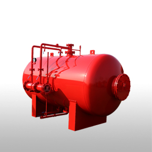 压力式泡沫比例混合装置主要由带胶囊的泡沫液压力储罐与利用文丘里原理制成的PHYM型压力式比例混合器组成,当系统管网中的水流经比例混合器减压孔板时,在孔板的前后会形成压差。压高处的一部分水(3%或6%)通过泡沫罐的进水管进入罐内,挤压胶囊,将胶囊中的泡沫液通过泡沫罐的出液管挤压至比例混合器低压处与水混合形成泡沫混合液,形成的泡沫混合液输出到泡沫产生设备(中、低、高倍数泡沫产生器,泡沫枪,泡沫炮等)与空气混合产生泡沫灭火。该装置广泛用于油库、化工厂、机库、油田、燃油锅炉、地下车库等场所。